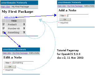 To start developing new code in OpenACS, we build a new package. A package is a a discrete collection of web pages, tcl code, and database tables and procedures. A package with user interface is called an application; a package which provides functions to other packages and has no direct interface, a service. A package can be installed, upgraded, and removed. It communicates with other packages through an API. This chapter walks you through the minimum steps to create a useful package, including writing documentation, setting up database tables and procedures, writing web pages, debugging, and automatic regression testing.